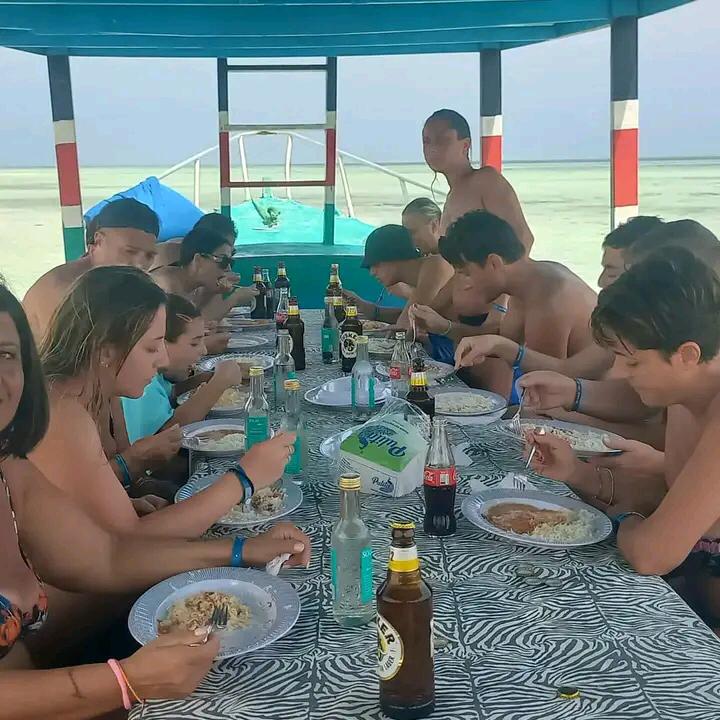 Faremo una sosta nella "foresta delle stelle marine": cercheremo stelle marine di diversi colori, coralli, pesci palla e molto altro. Ci sposteremo quindi nella zona dei famosi atolli di Sardinia 2 che emergono durante la bassa marea. Qui faremo una sosta per gustare pesce alla griglia, gamberi e aragoste accompagnati dal tipico riso al cocco (per chi non mangia pesce prepareremo pollo alla griglia), serviti sulla barca in un'atmosfera locale allegra e informale.